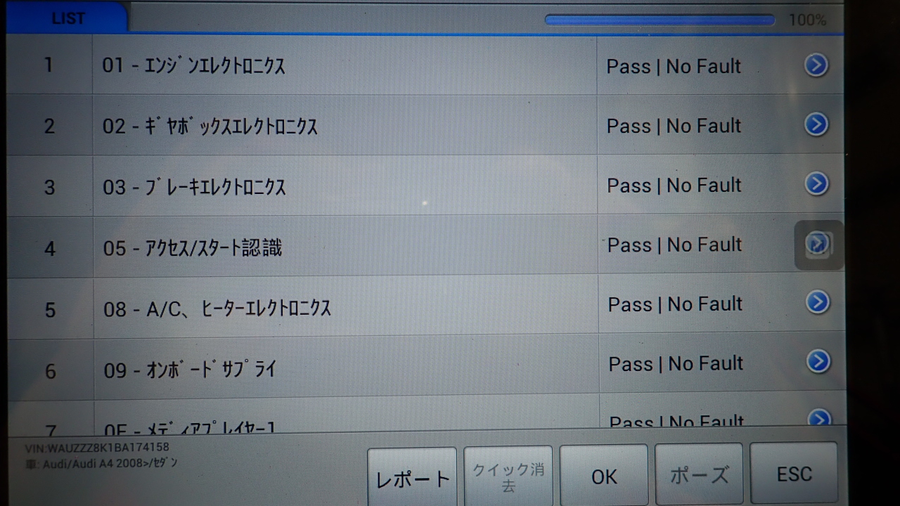 テスターにて故障コードの確認と、サービスのリセットを実施しています。