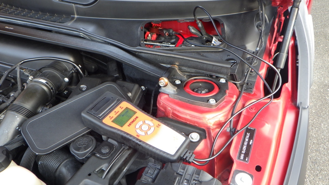 テスターでバッテリーの点検を実施しています。