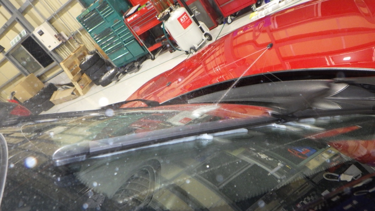 ラバーの状態、拭き取り具合、ウォッシャーの噴霧状態等点検しています。