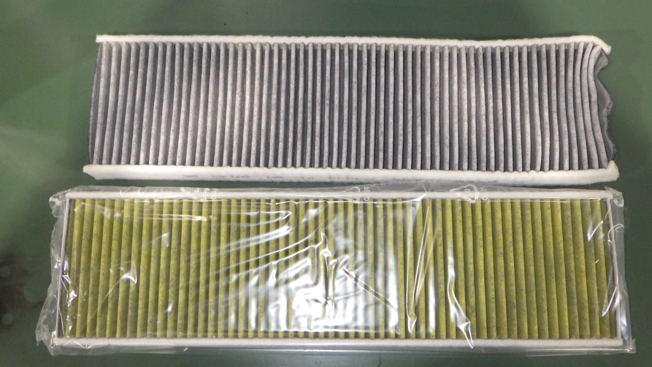 交換前、交換後のオイルフィルターです。オイルフィルター交換実施しています。