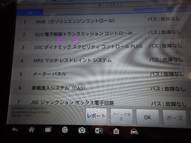 テスターにて各制御系統の診断を行いましたが異常ありませんでした。
