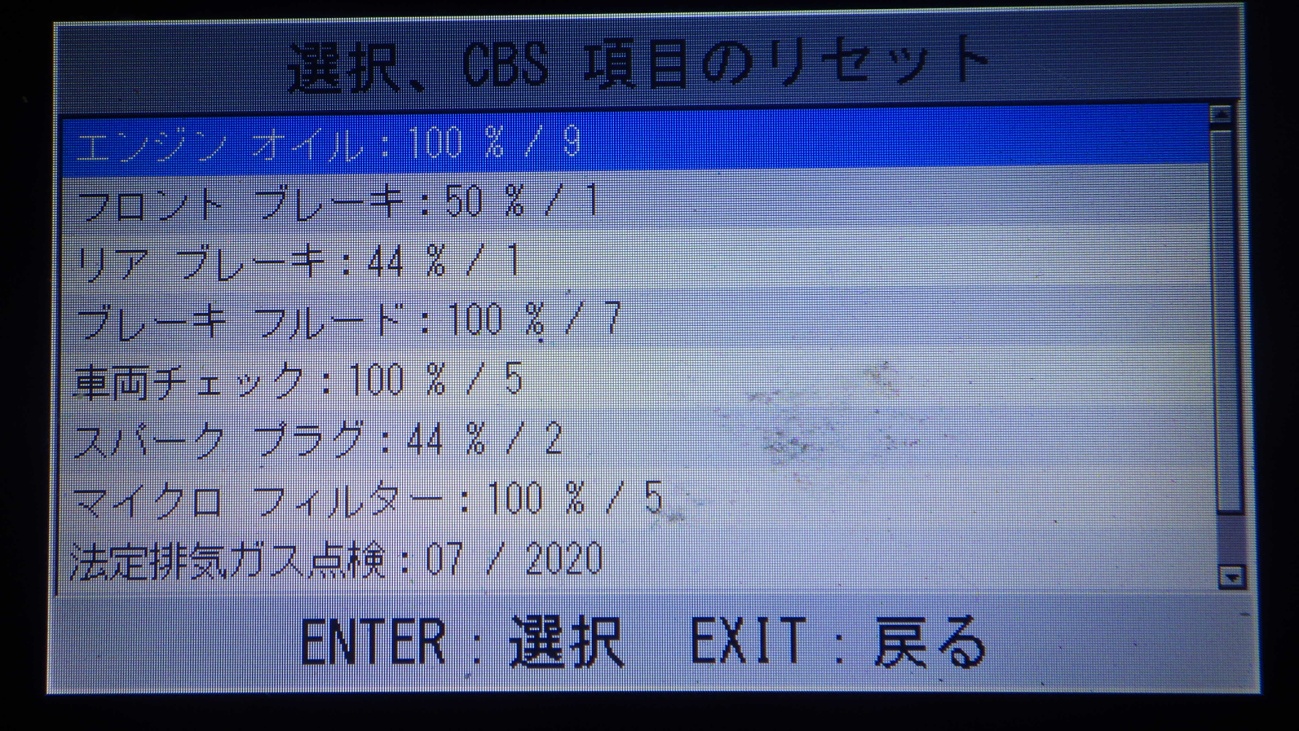 テスターにて故障コードの確認と、サービスのリセットを実施しています。