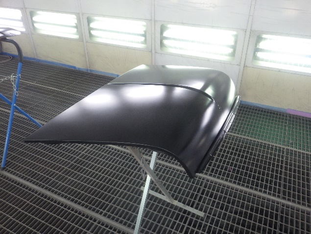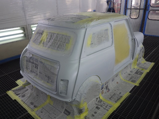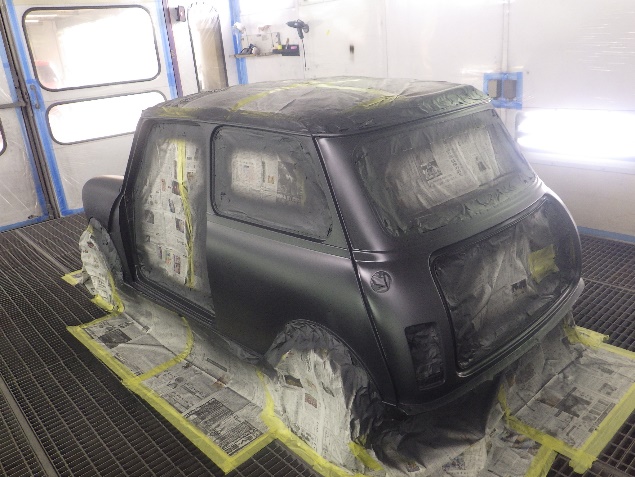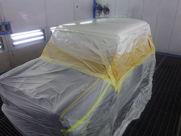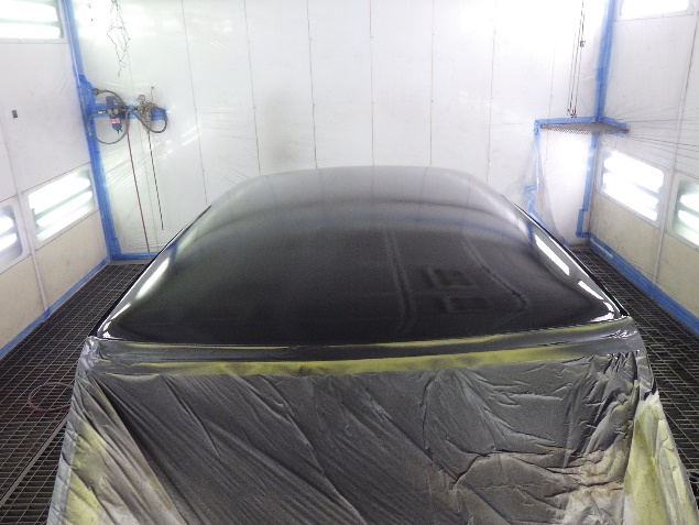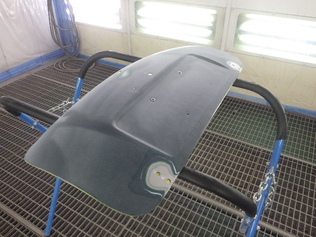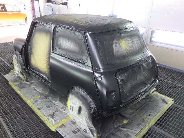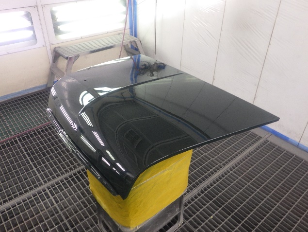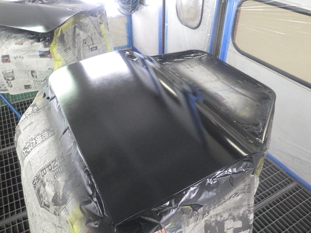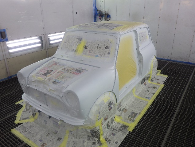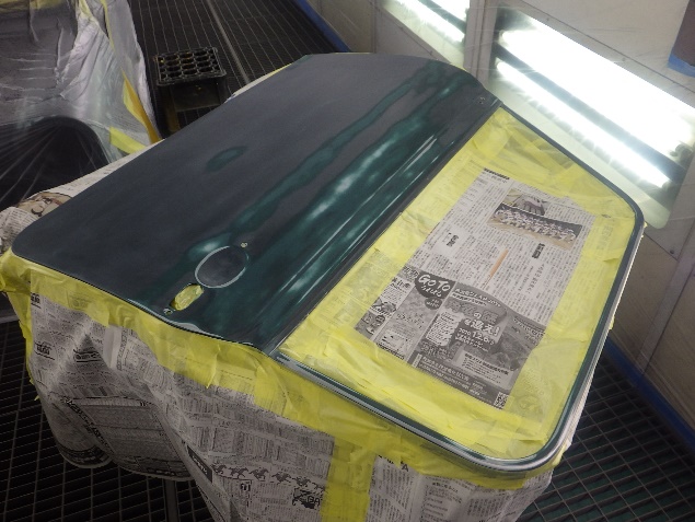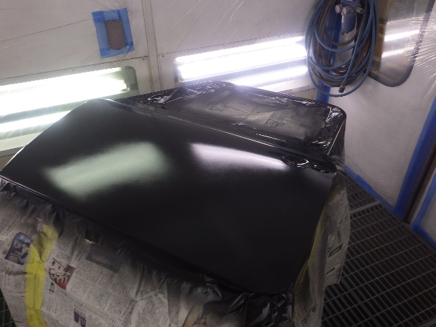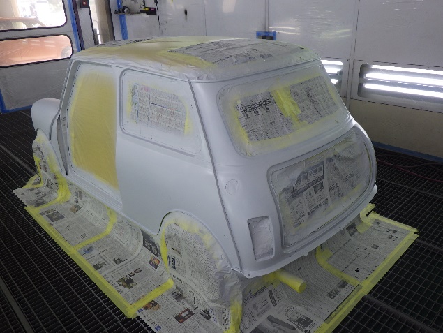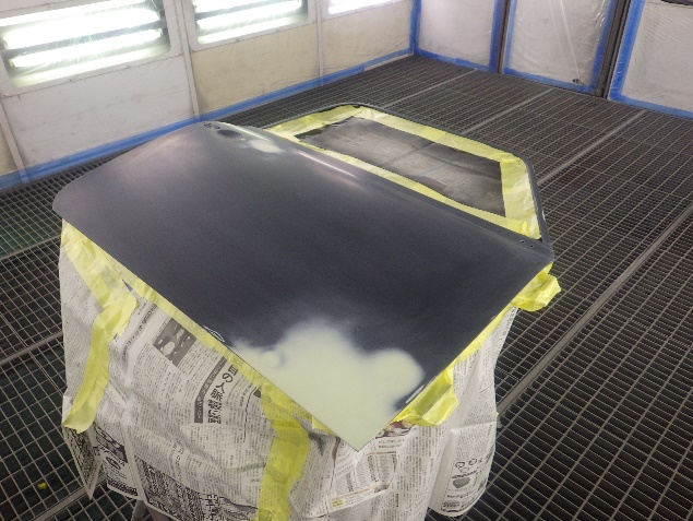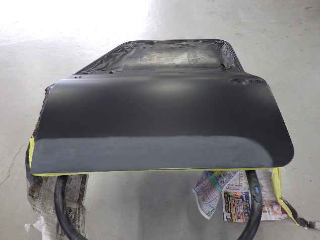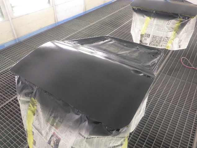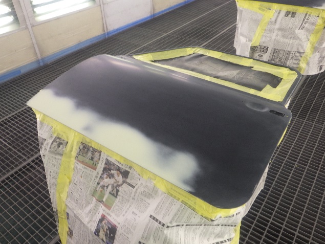 乾燥後、ボンネット、バックドア、左右ドアパネルから順に、塗装準備を行い、