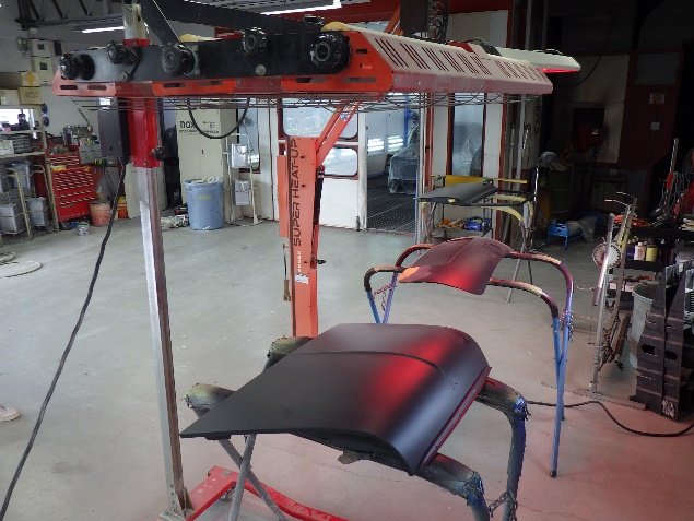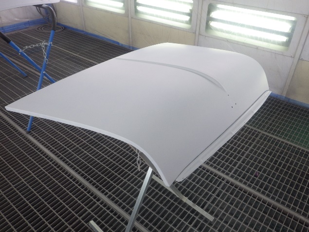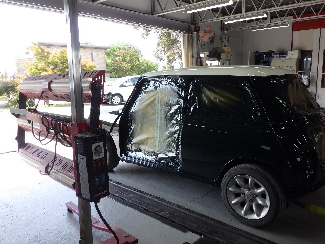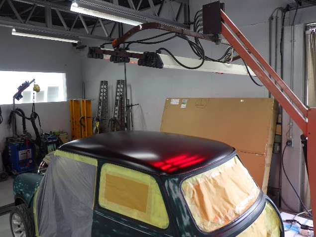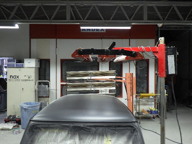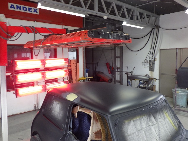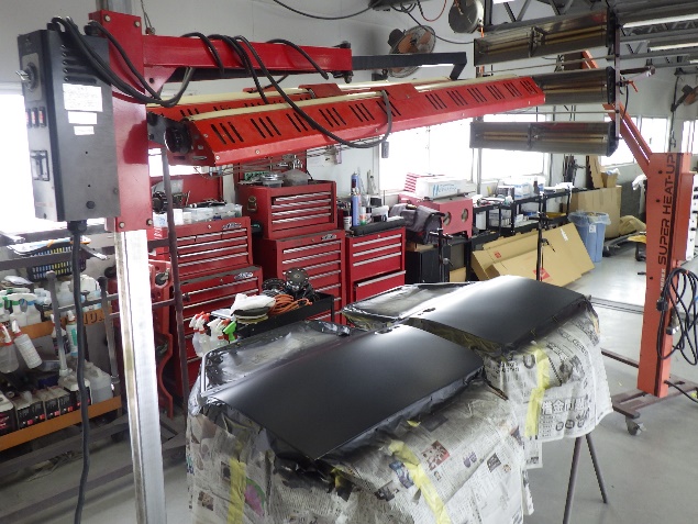 ルーフパネルの塗装作業の後、遠赤外線を使用し、塗装箇所を強制乾燥させました。