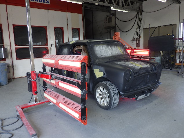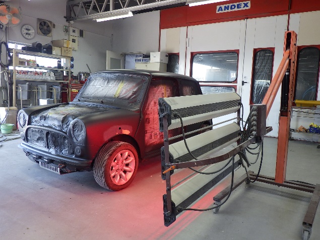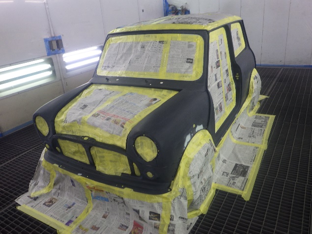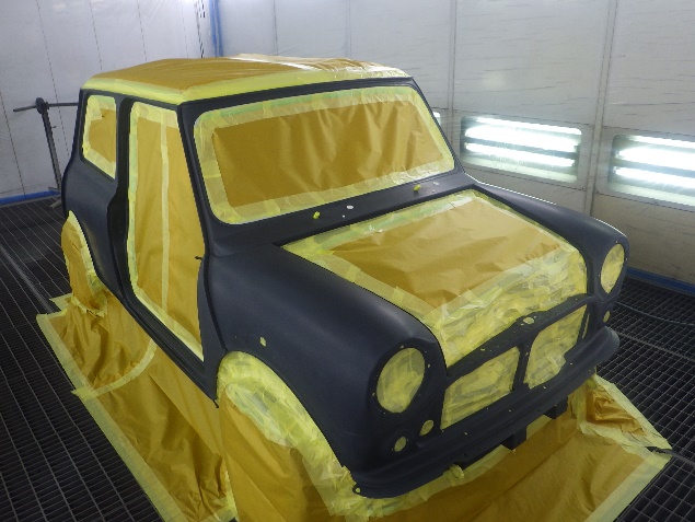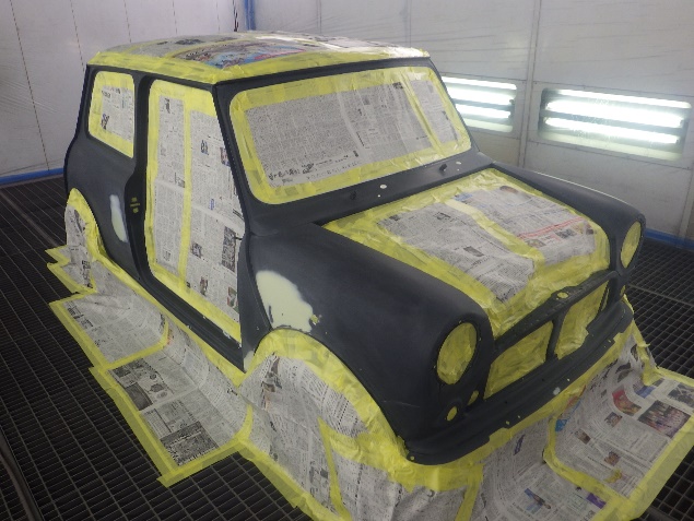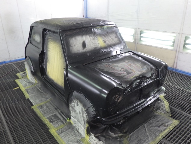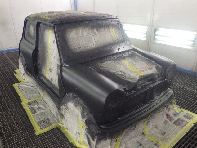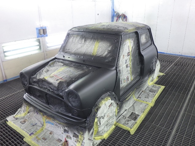 乾燥後、最後にボディ全面にサフェーサーを塗布し、全ての修正作業が完了です。