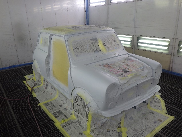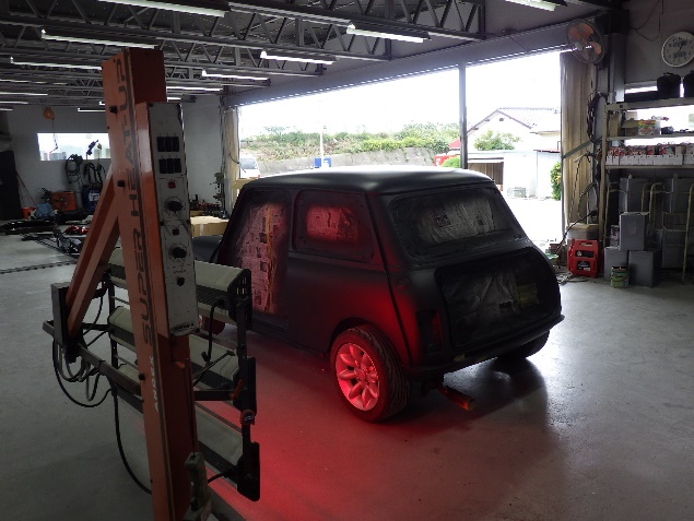 ボンネット、バックドアの時と同様の手順で、プライマー、サフェーサーの順に、塗布作業を行いました。