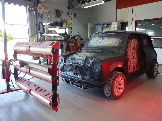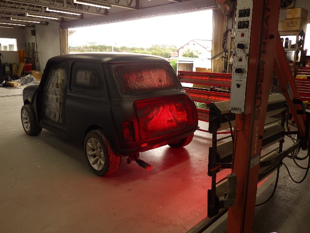 サフェーサーの塗布作業の後、遠赤外線を使用し、ボディ全面をしっかりと強制乾燥させました。