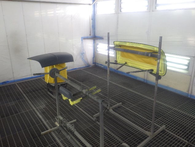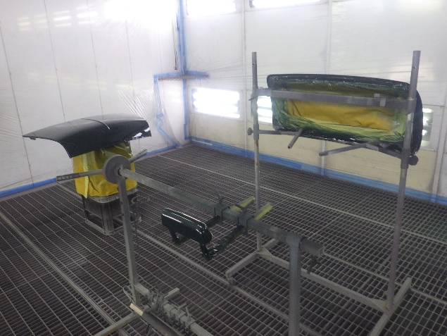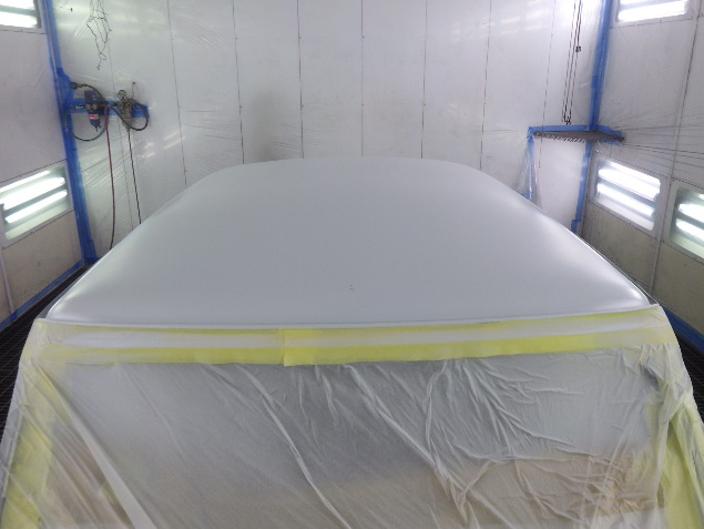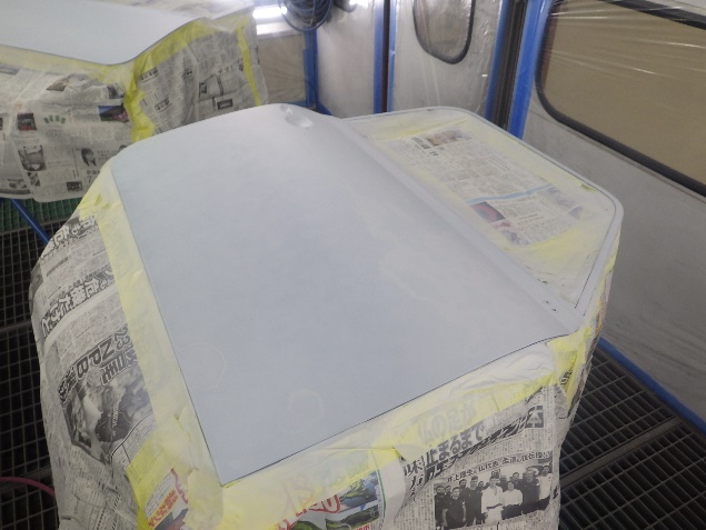 乾燥後、塗装準備(足付け、紙貼り、脱脂、エアブロー)を行い、