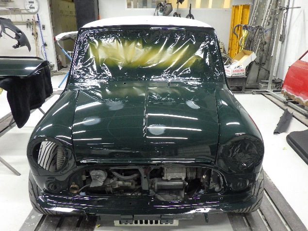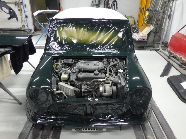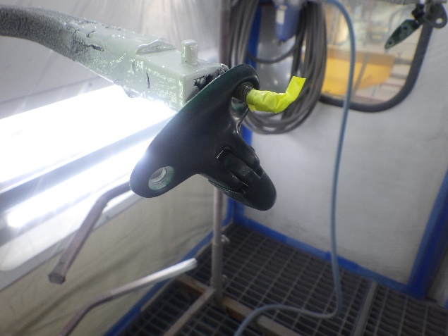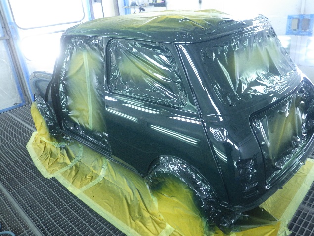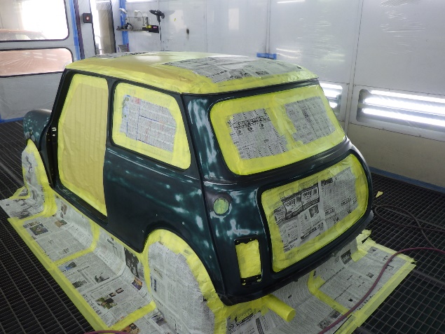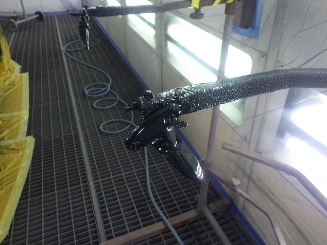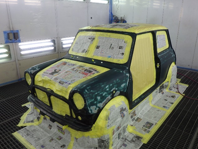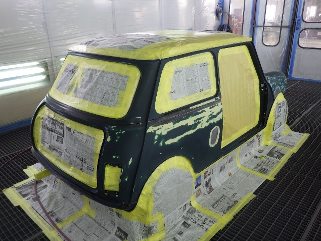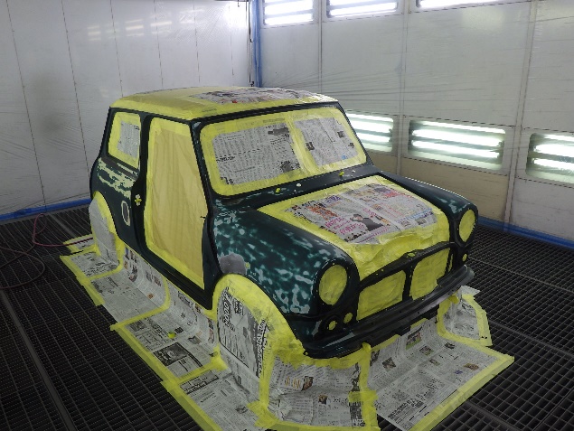 ベースコート(緑)、トップコート(クリヤー)の順に、塗装作業を行いました。