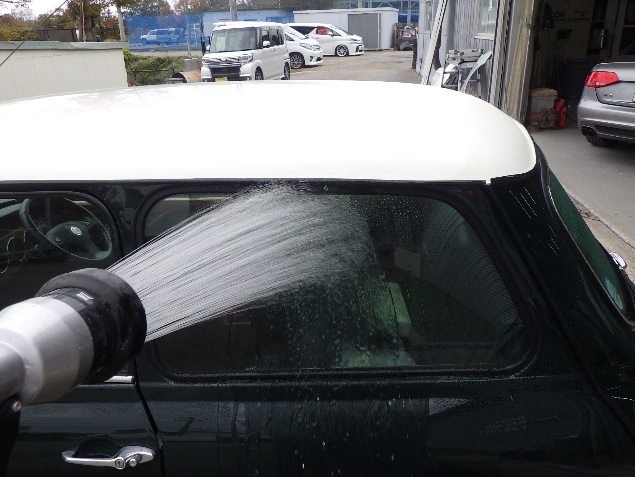 ガラスの取り付け作業の後、各箇所の雨漏れ確認作業を行いました。