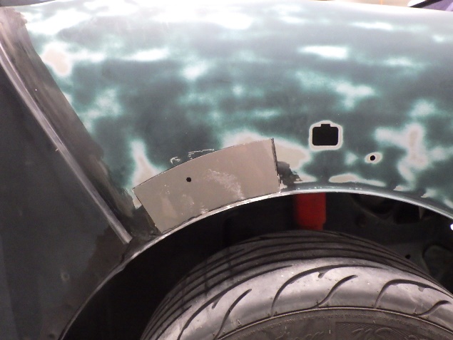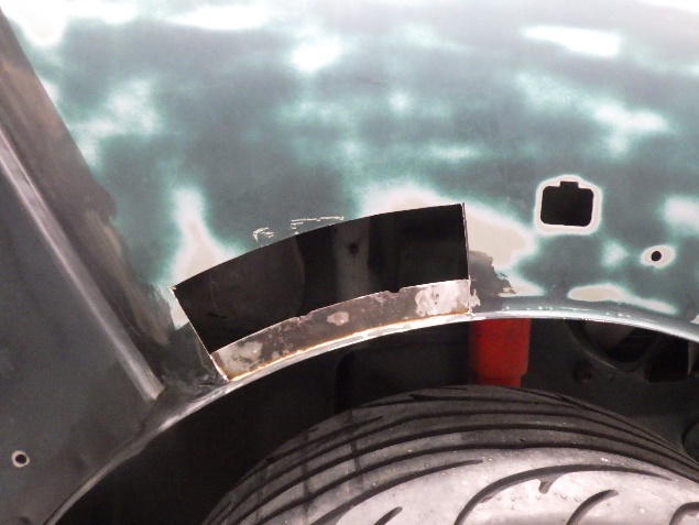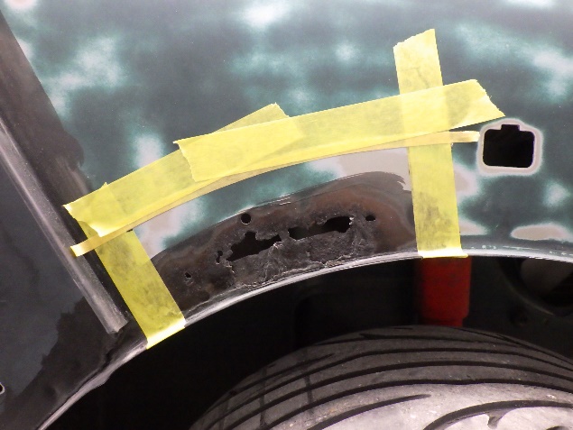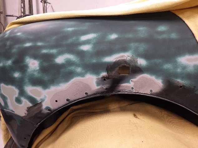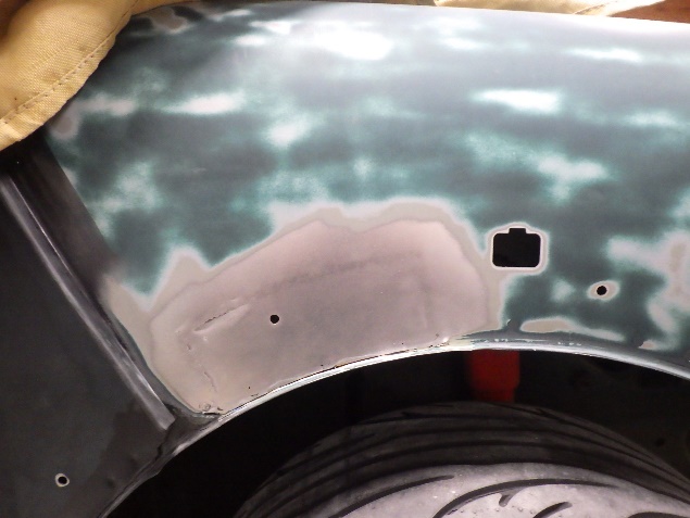 右のフロントフェンダーの修正作業の後、左のフロントフェンダーにも錆による腐食があった為、