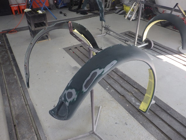 パテ付け作業の後、ボディの修正作業を進めて行きました。