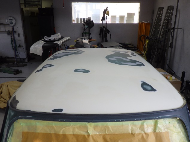 ドアパネル類の次は、ルーフパネルにサフェーサーを塗布して行きました。