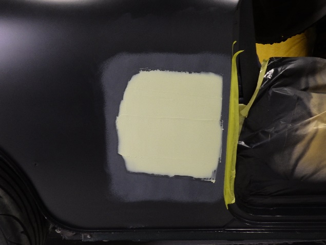乾燥後、パテ付け準備(足付け、マスキング、脱脂、エアブロー)を行い、