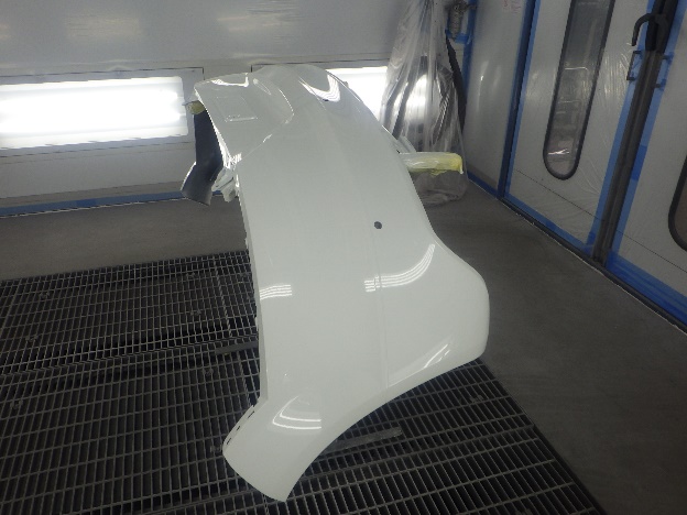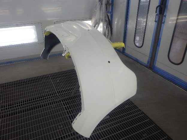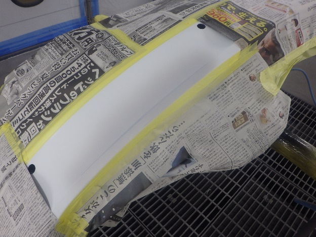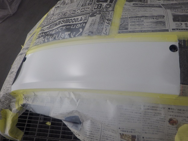 ベースコート(白)、トップコート(クリヤー)の順に塗装作業を行いました。