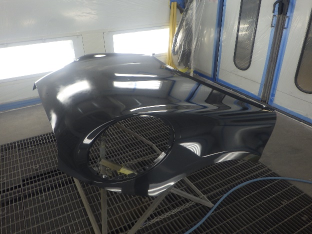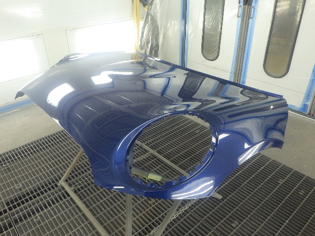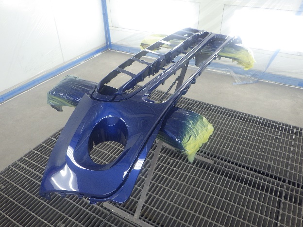 ベースコート(青)、トップコート(クリヤー)の順に塗装作業を行いました。