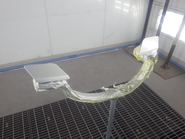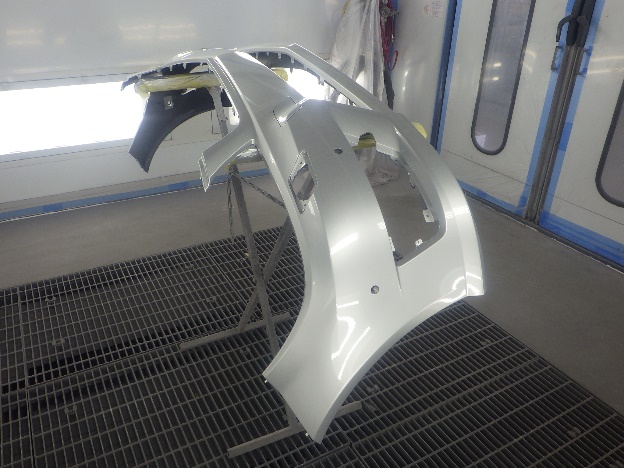 ベースコート(シルバー)、トップコート(クリヤー)の順に塗装作業を行いました。