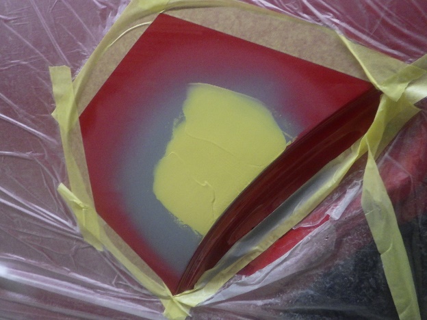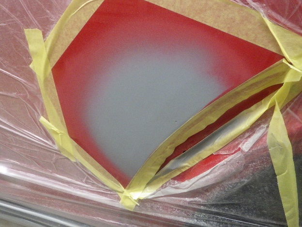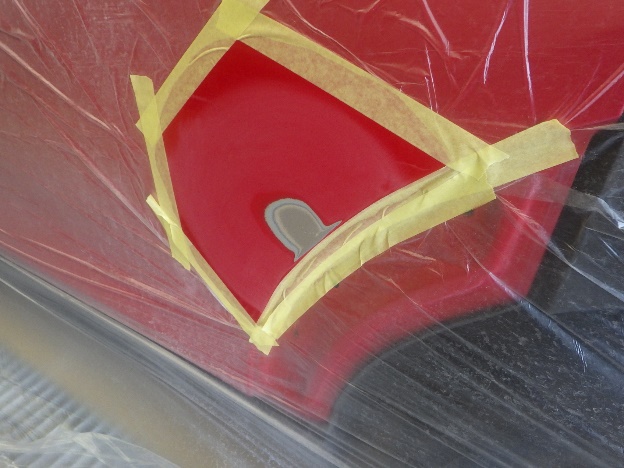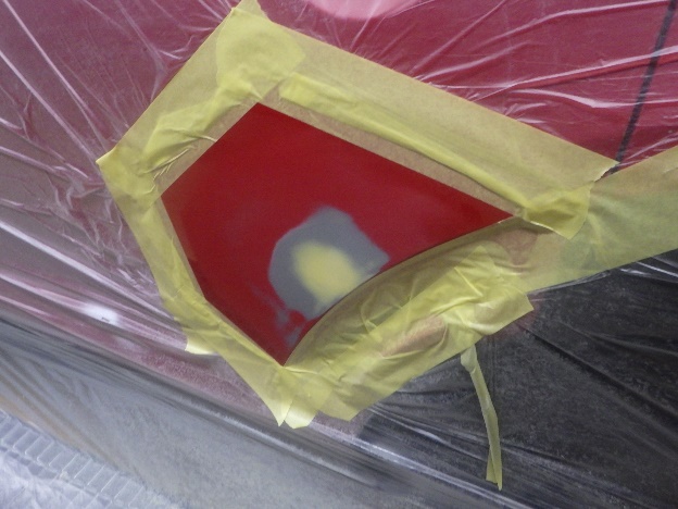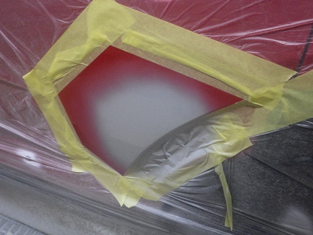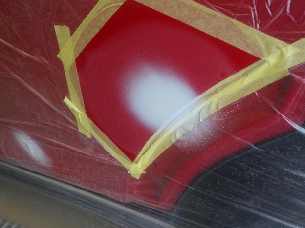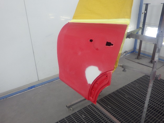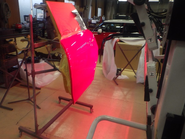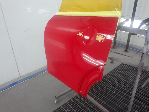 ベースコート(赤)、トップコート(クリヤー)の順に塗装作業を行いました。