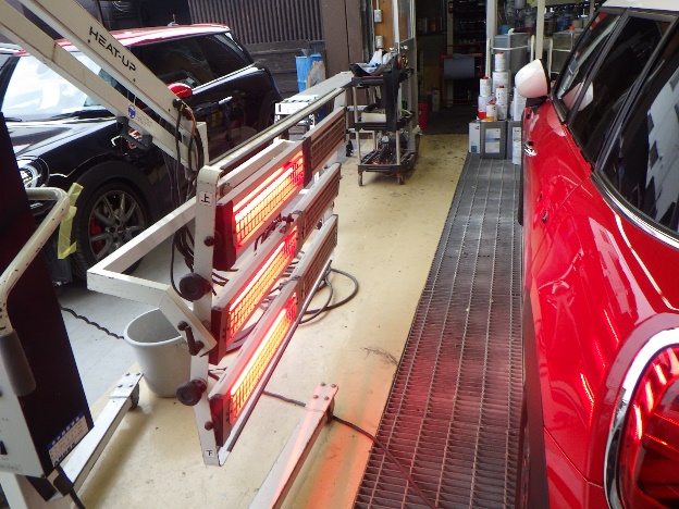 サフェーサーの塗装作業の後、遠赤外線を使用し、60℃以上30分間乾燥作業を行いました。