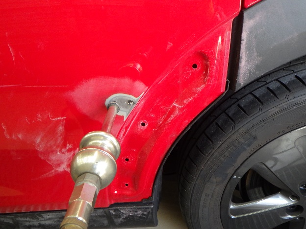 分解作業の後、凹み箇所の板金作業を行いました。