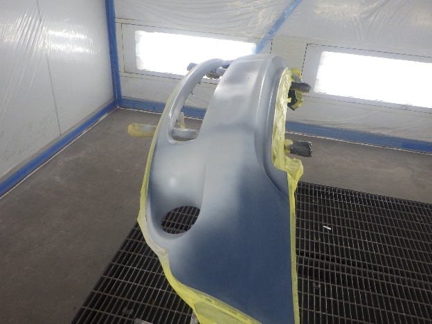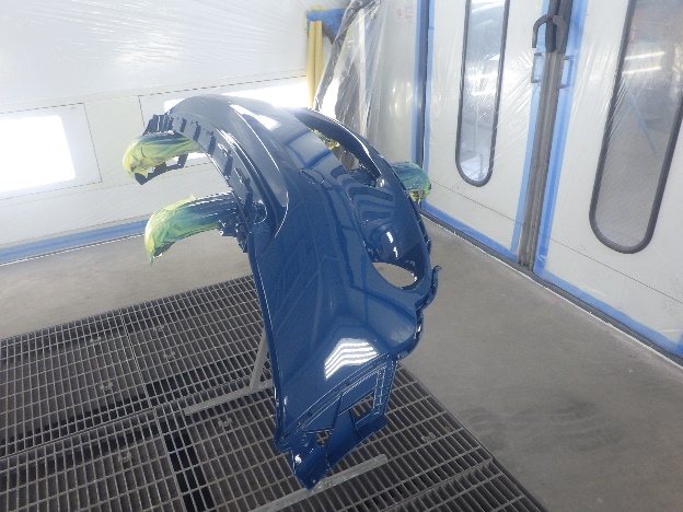 ベースコート(青)、トップコート(クリヤー)の順に塗装作業を行いました。