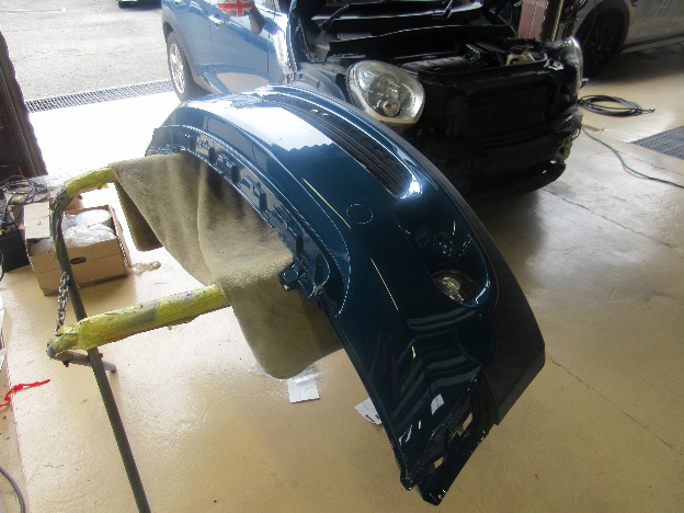 【板金塗装】【事故】 兵庫県西宮市、H様、2012y、MINI、クロスオーバー、R60、フロントバンパー損傷へこみ修理レポートです!ありがとうございました。