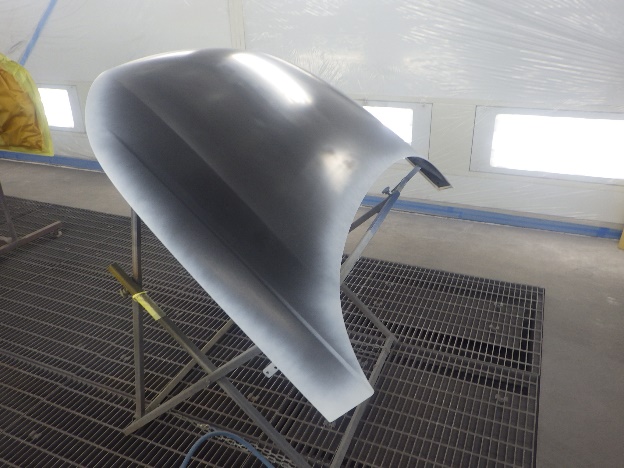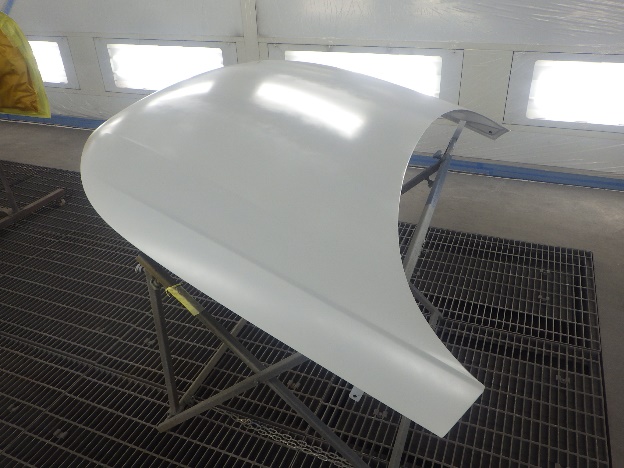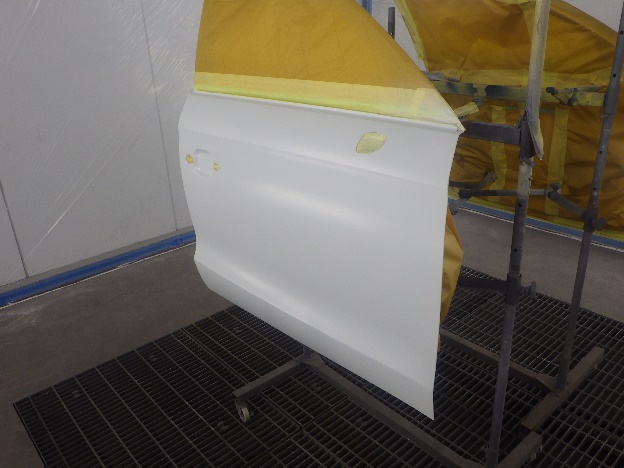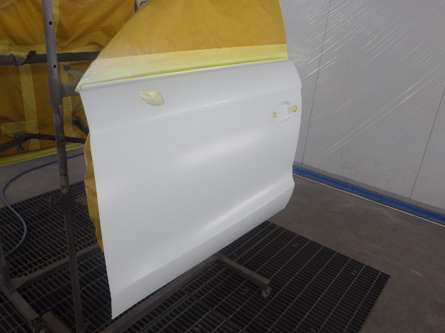 ベースコート(白)、トップコート(クリヤー)の順に塗装作業を行いました。