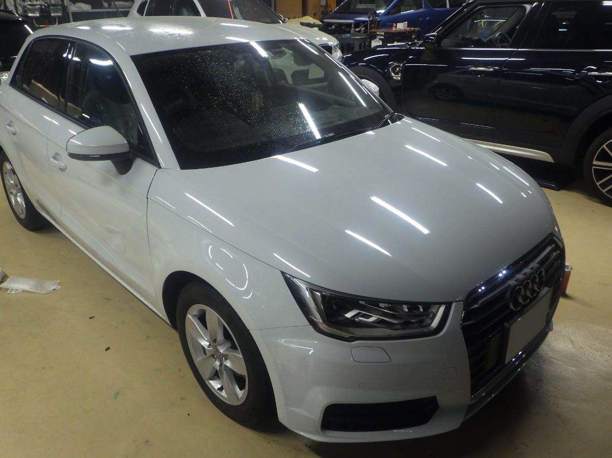 塗装乾燥の後、組み付け作業、磨き作業、ボディの全面コーティング施工、