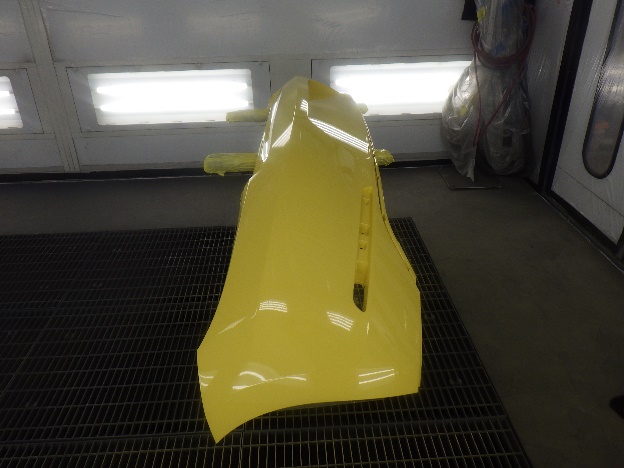 その後、ベースコート(黄)、トップコート(クリヤー)の順に、塗装作業を行いました。