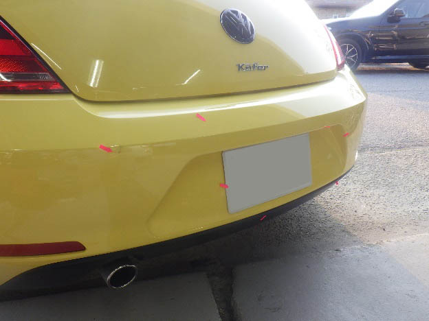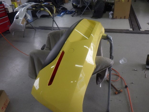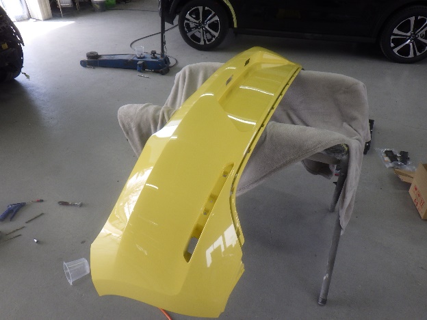 乾燥後、リヤバンパーへ構成部品を取り付け、組み立て作業を行いました。