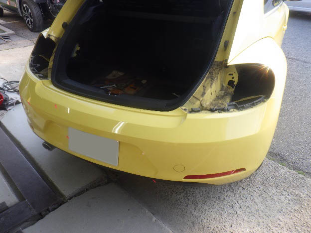 内部への損傷が無い事を確認した後、リヤバンパー → テールランプの順に取り付け、