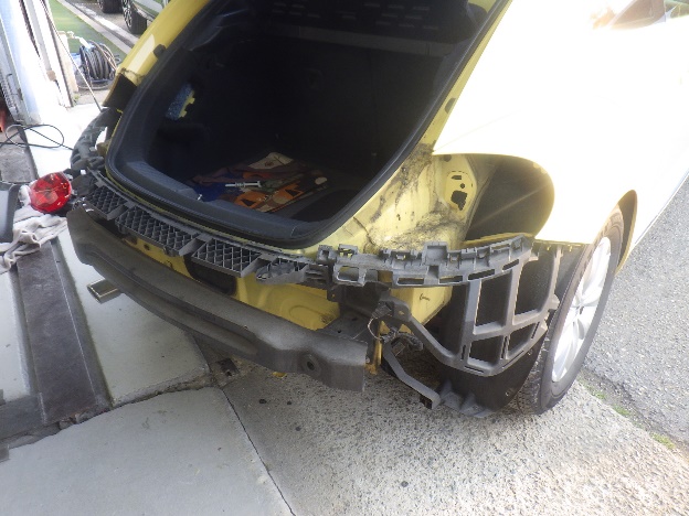 まず初めに、リヤバンパー内部の損傷有無の確認の為、