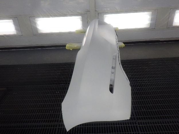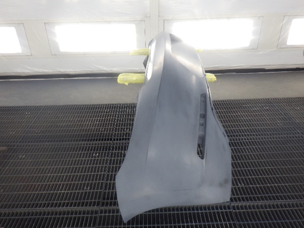 リヤバンパーへの塗膜の密着性を向上させる為に、プライマーの塗布作業を行いました。