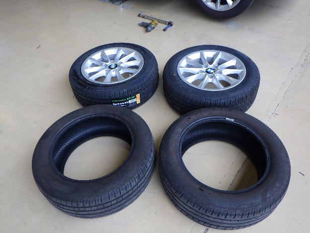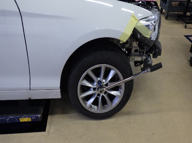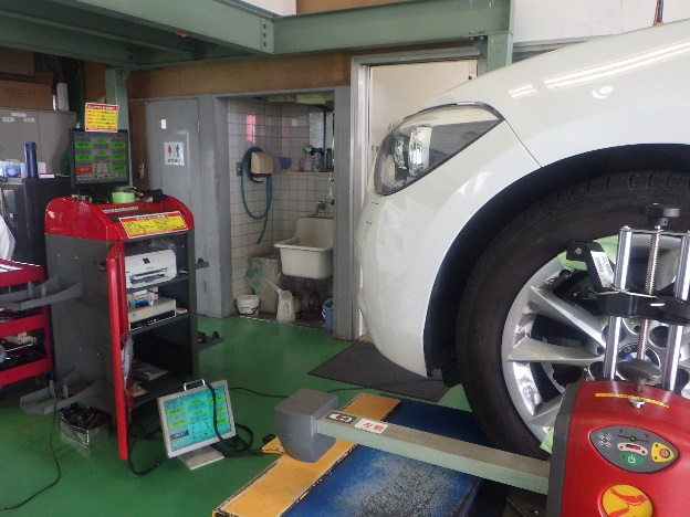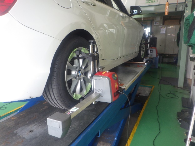 組み付け作業の後、タイヤの交換作業、4輪アライメント調整作業、