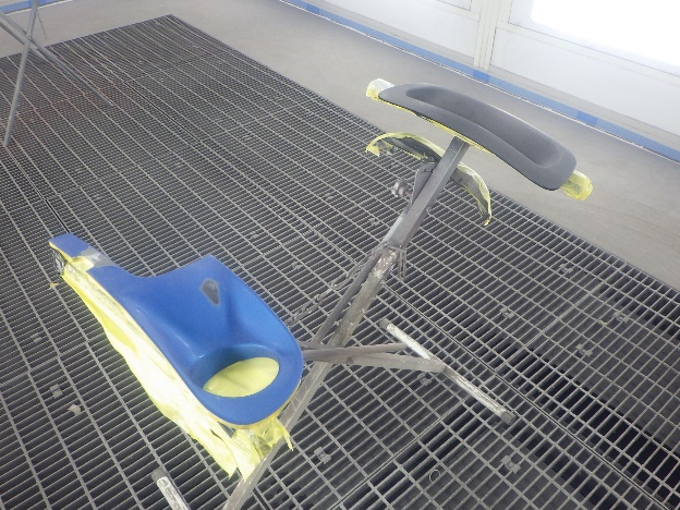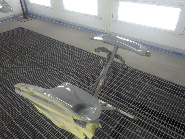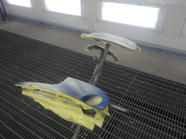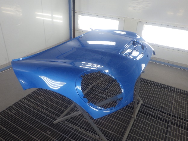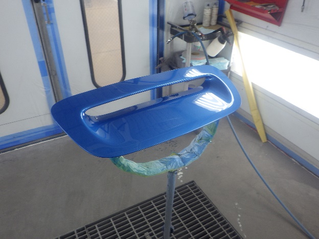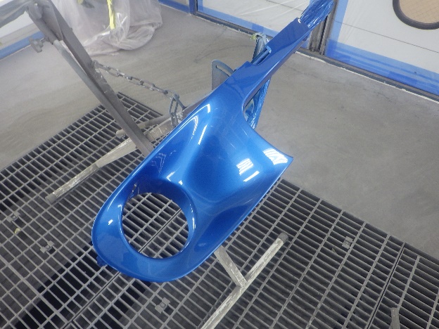 ベースコート(青)、トップコート(クリヤー)の順に塗装作業を行いました。