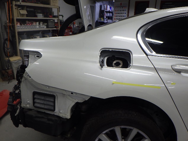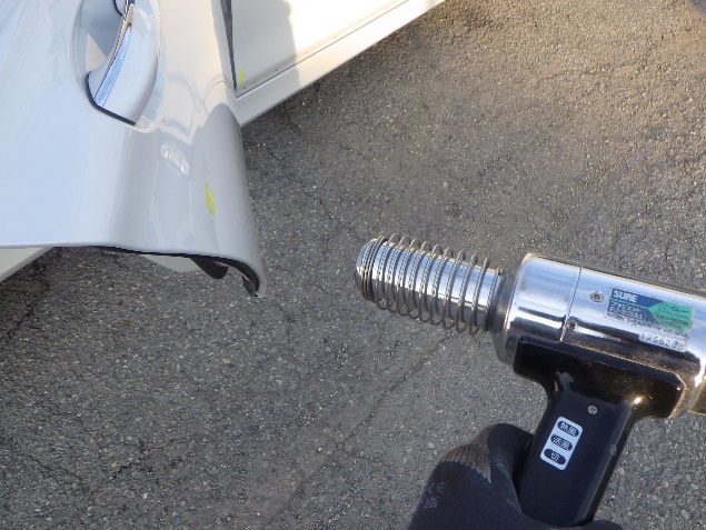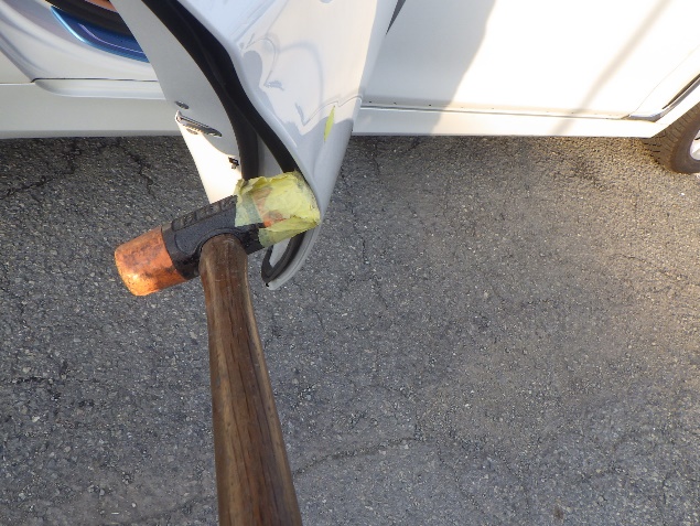 仮合わせ作業の後、リヤドアの鈑金修正作業を行いました。