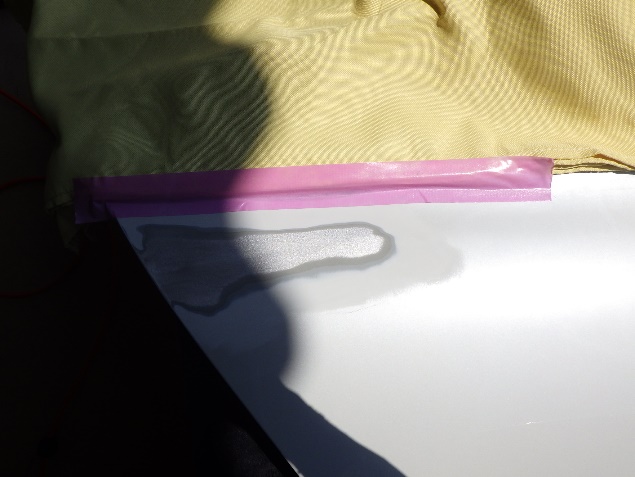 サフェーサー乾燥の後、パテ付け準備(足付け、紙貼り、脱脂、エアブロー)を行い、