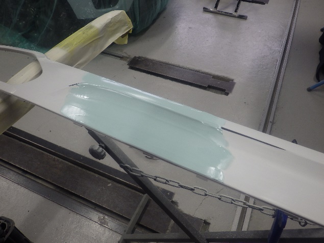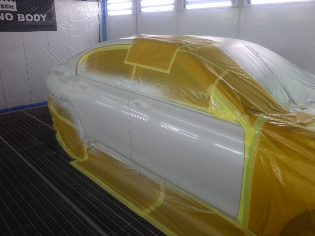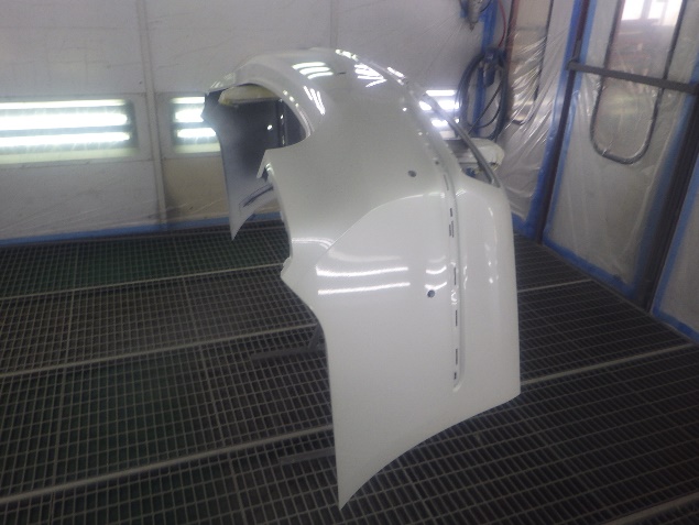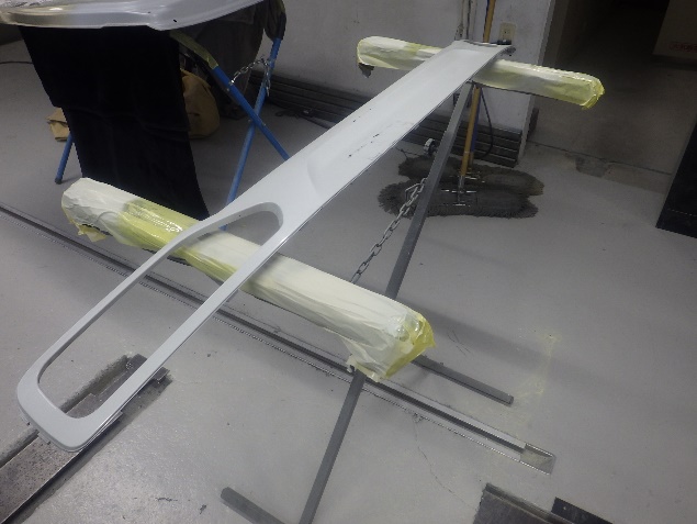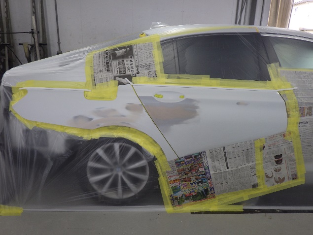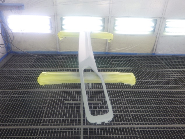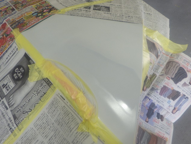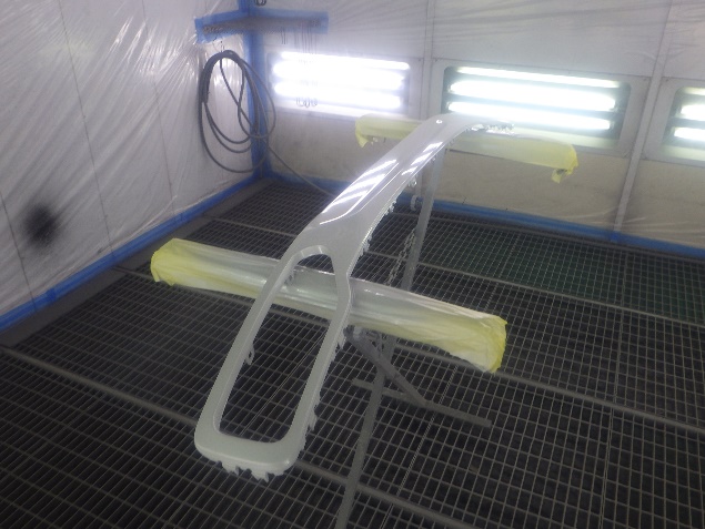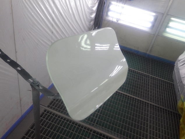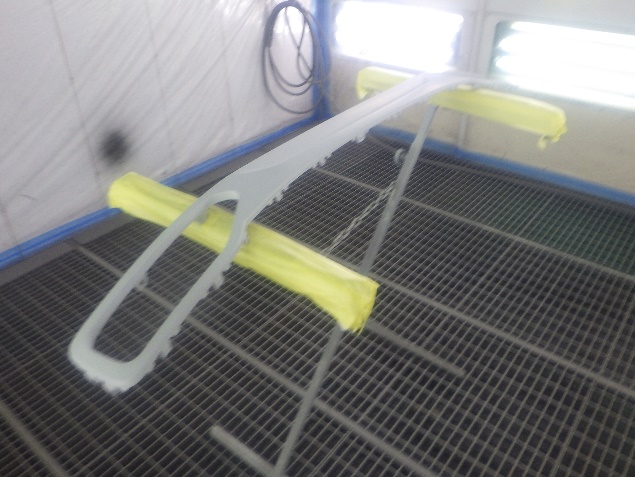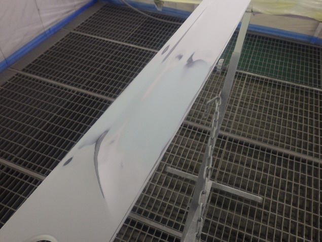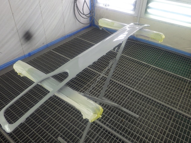 プライマー塗布の後、ベースコート(白)、トップコート(クリヤー)の塗装作業を行いました。