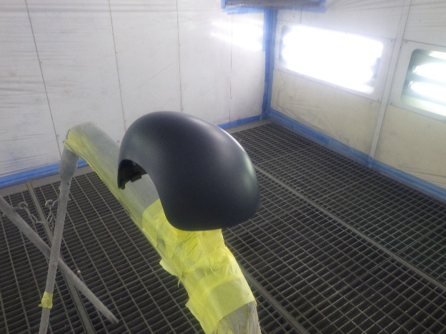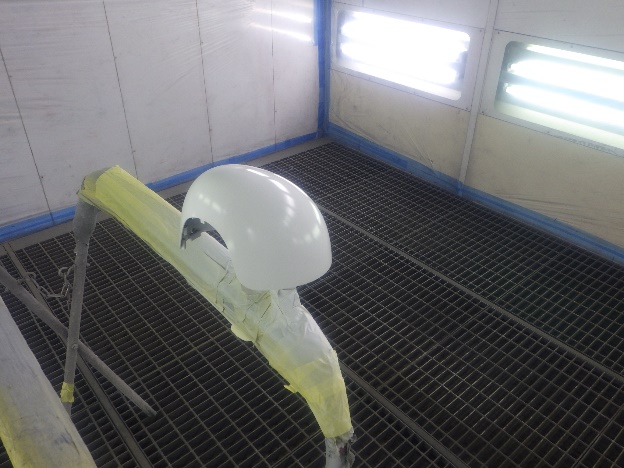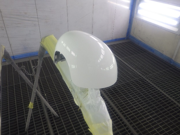 プライマー塗装作業の後、ベースコート(白)、トップコート(クリヤー)の順に塗装作業を行いました。