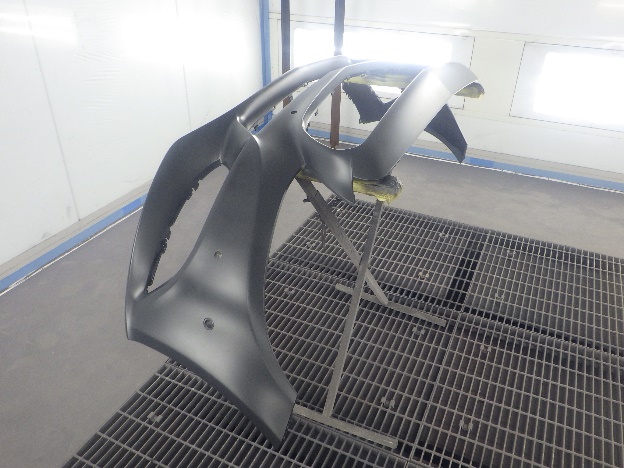 ベースコート(黒)、トップコート(クリヤー)の順に塗装作業を行いました。