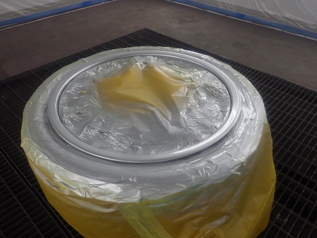 エアブロー)の後、ベースコート(銀)、トップコート(クリヤー)の塗装作業を行いました。
