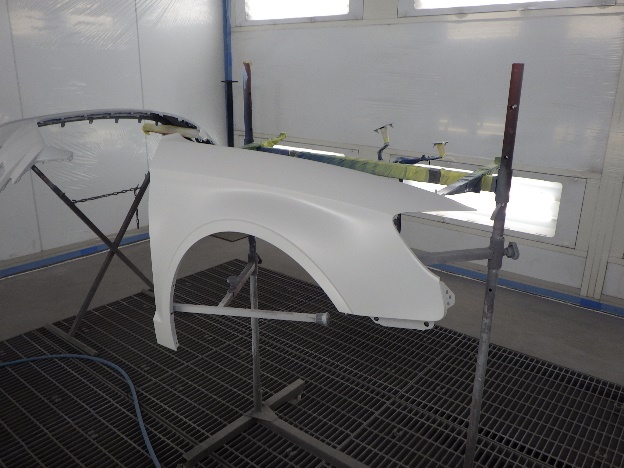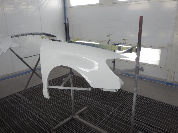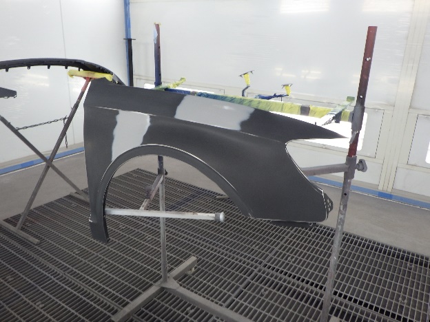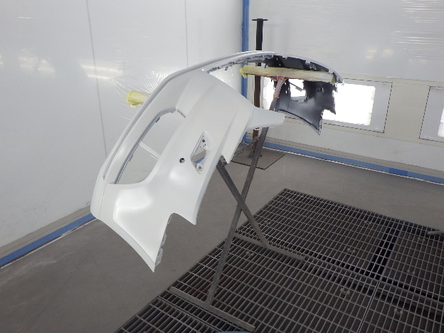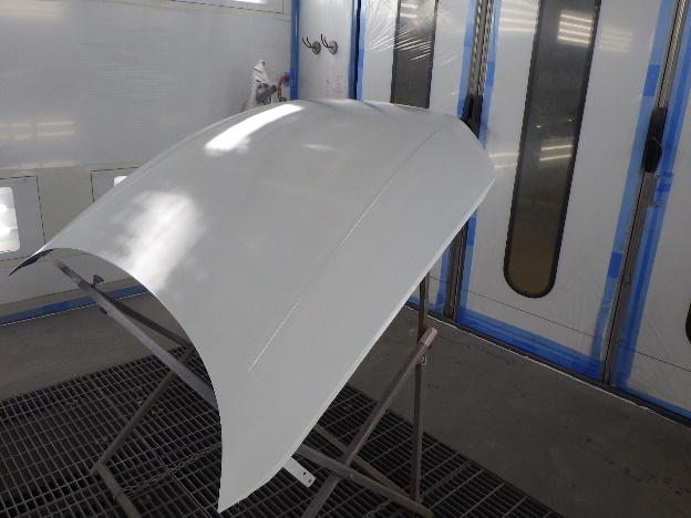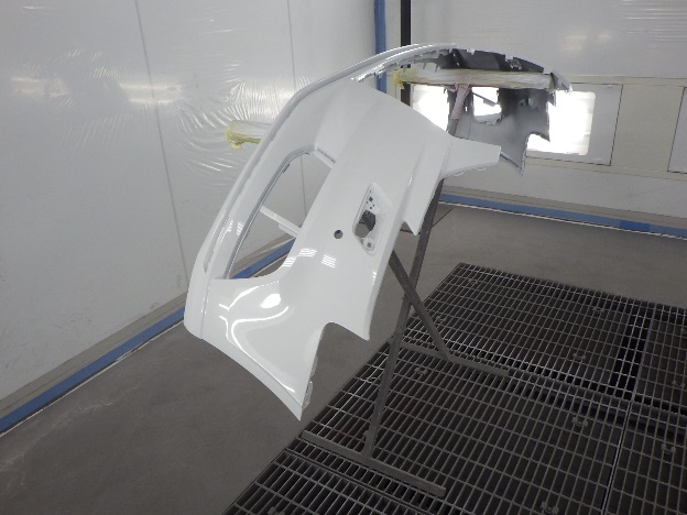 ベースコート(白)、トップコート(クリヤー)の順に塗装作業を行いました。