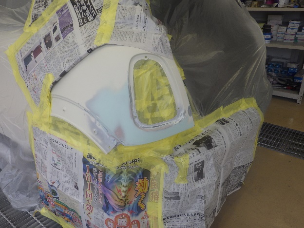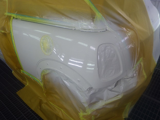 ベースコート(白)、トップコート(クリヤー)の順に塗装作業を行いました。