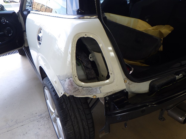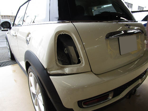 左リア廻り損傷での入庫になります。