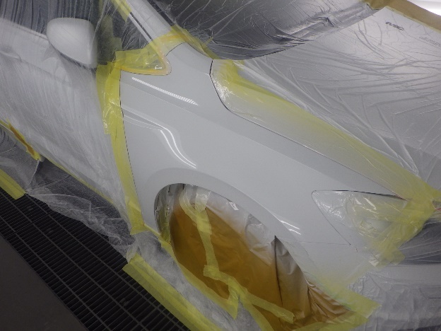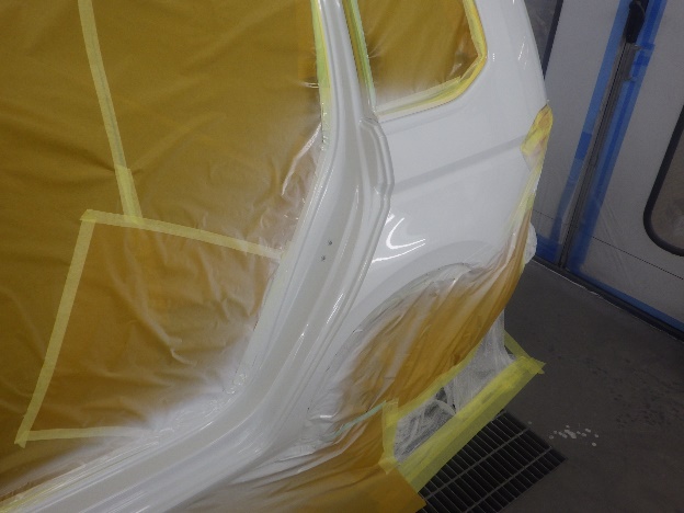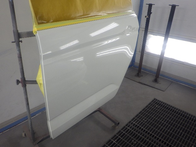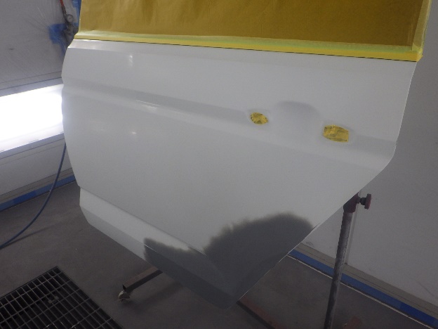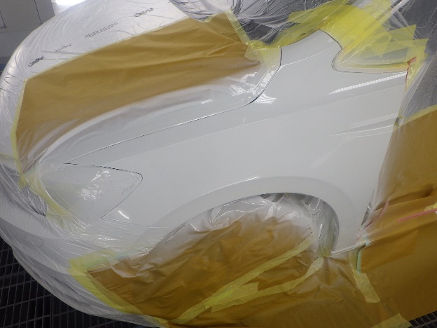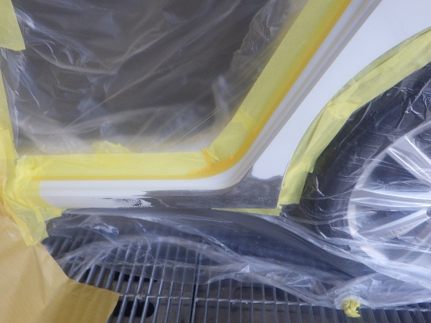 ベースコート(白)、トップコート(クリヤー)の順に塗装作業を行いました。