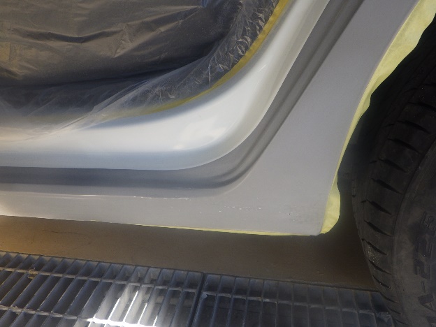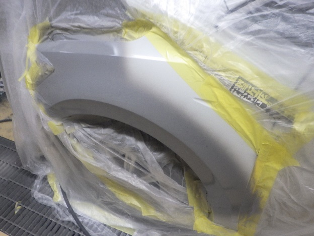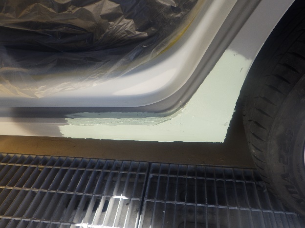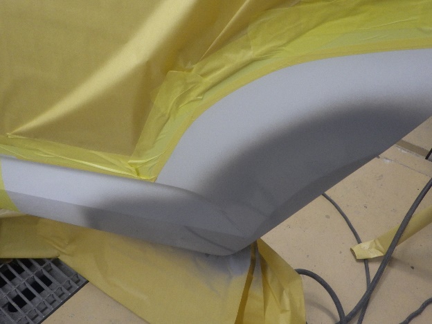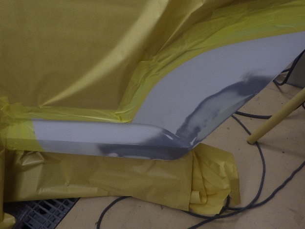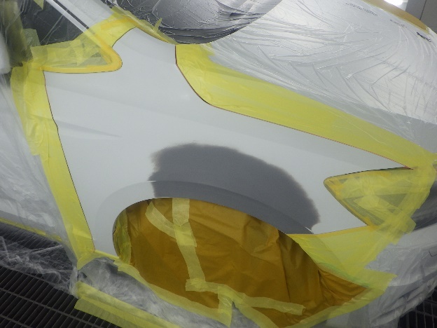 パテの密着性向上の為、プライマー、サフェーサーの塗装作業を行いました。