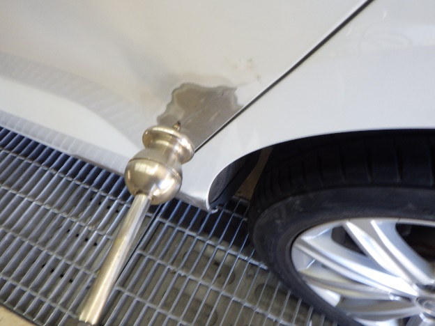 右フロント廻り損傷でのお預かりになります。 まず初めに、ホイールへの損傷があったので、足廻りの計測作業を行いました。 足廻りの計測を行ない、数値に問題が無い事を…