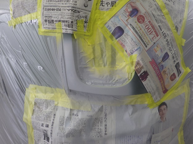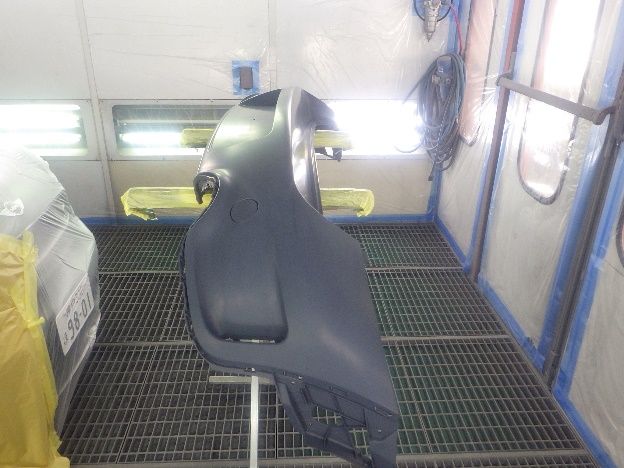 鈑金作業の後、マスキング作業、脱脂作業、エアブローを行い、