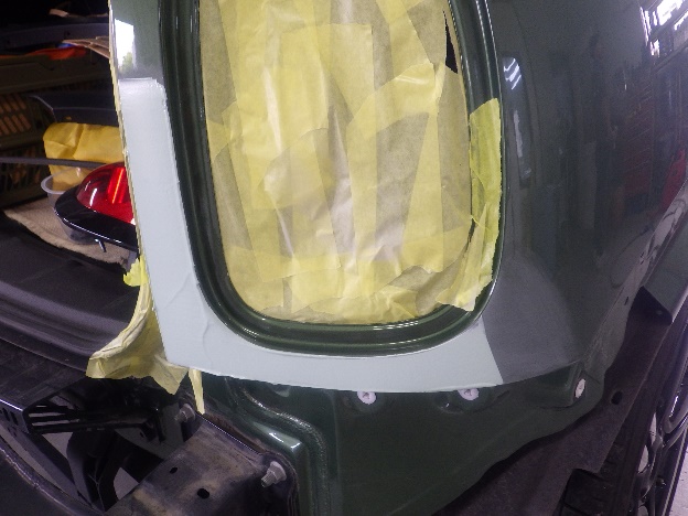 パテの密着性向上の為、プライマー、サフェーサーの塗装作業を行いました。