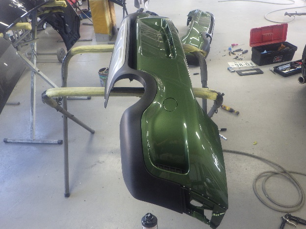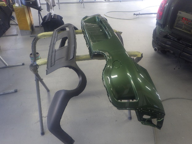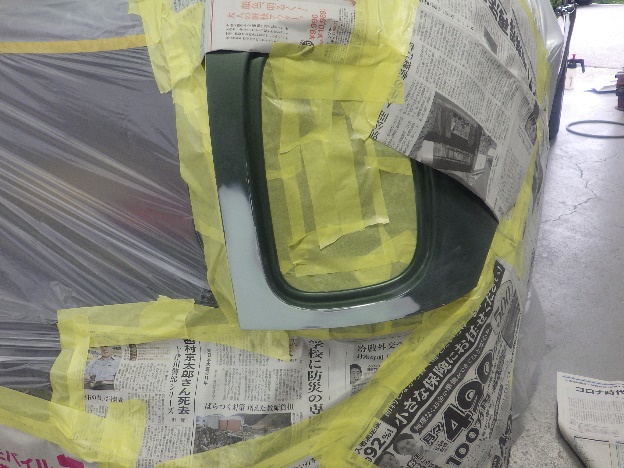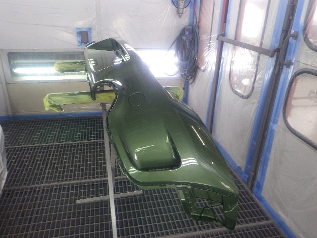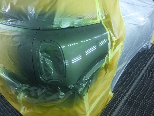 ベースコート(緑)、トップコート(クリヤー)の順に塗装作業を行いました。